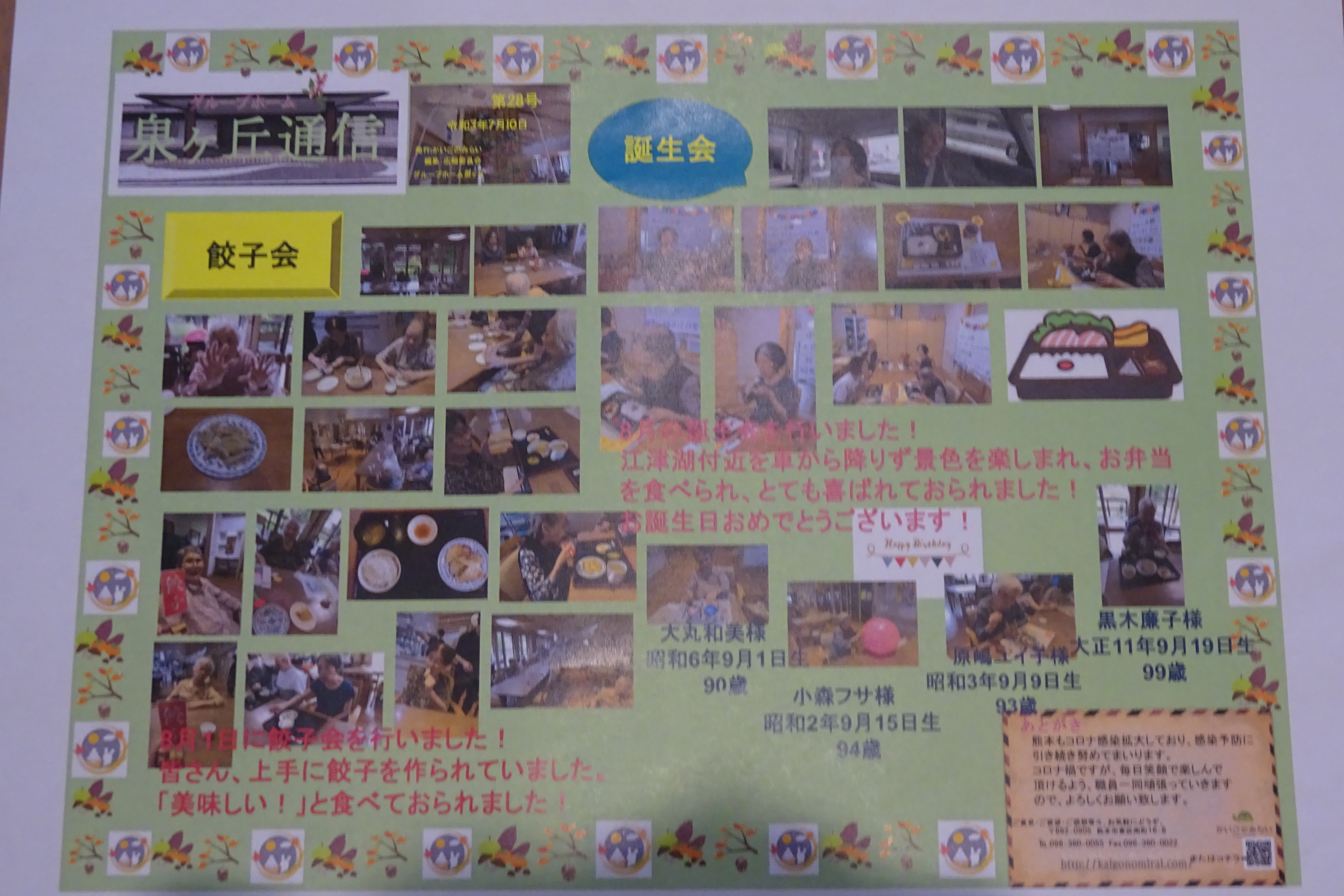 - 2021/09/26(日) 広報誌グループホーム御領広報誌ひだまり21号